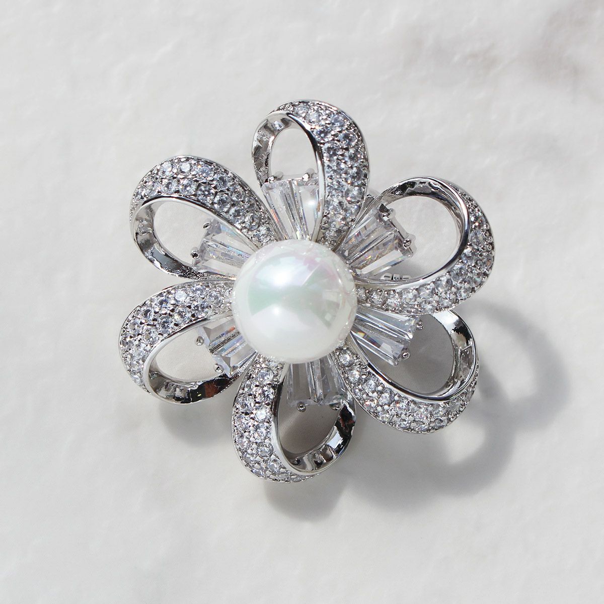 フラワーモチーフキュービックジルコニア×パールブローチ