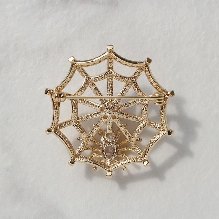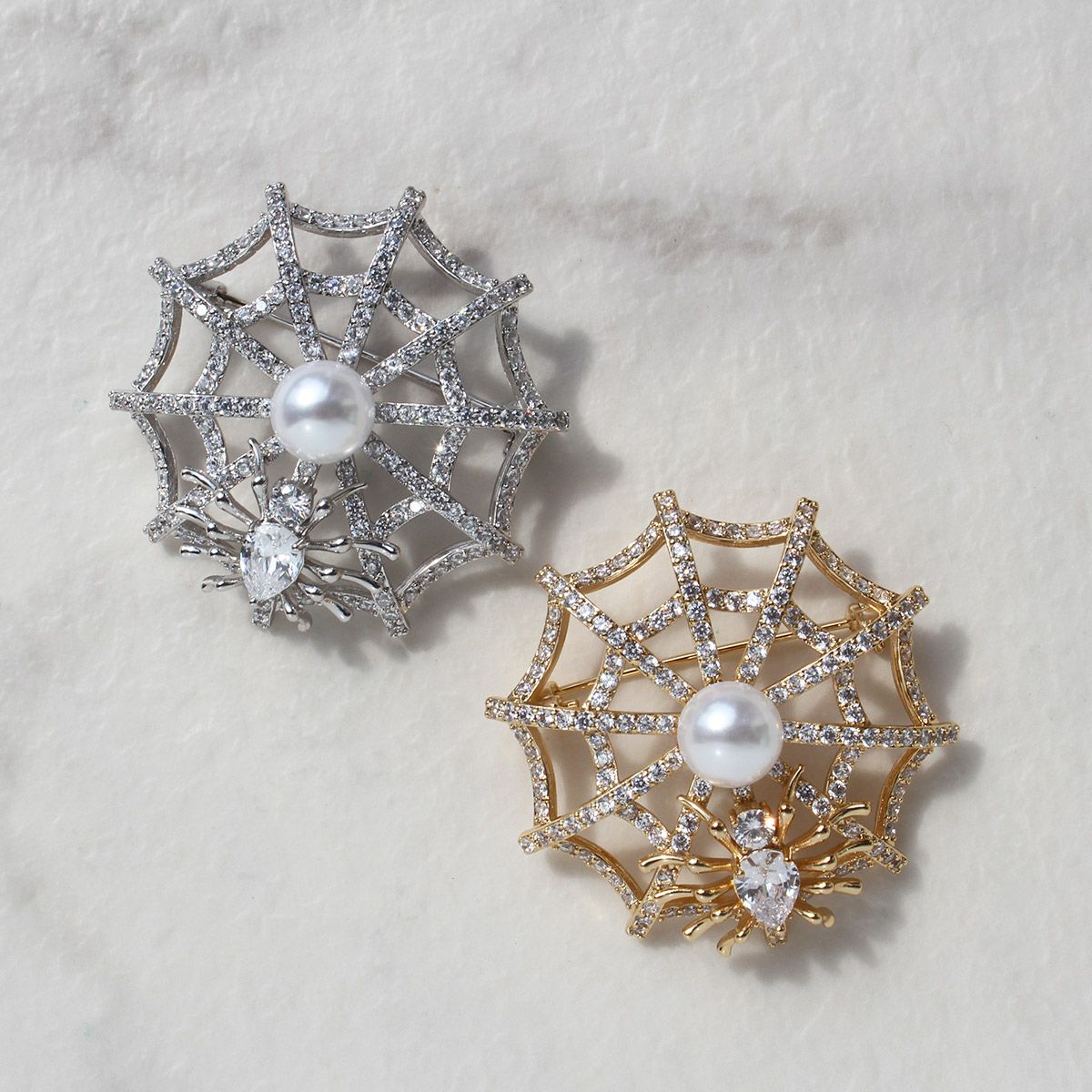 スパイダーウェブモチーフキュービックジルコニアブローチ