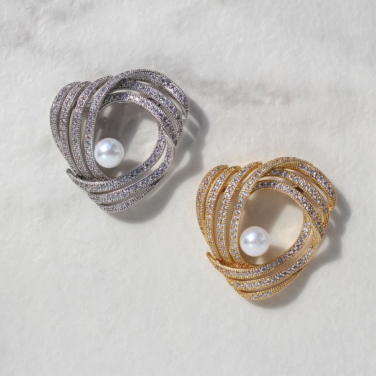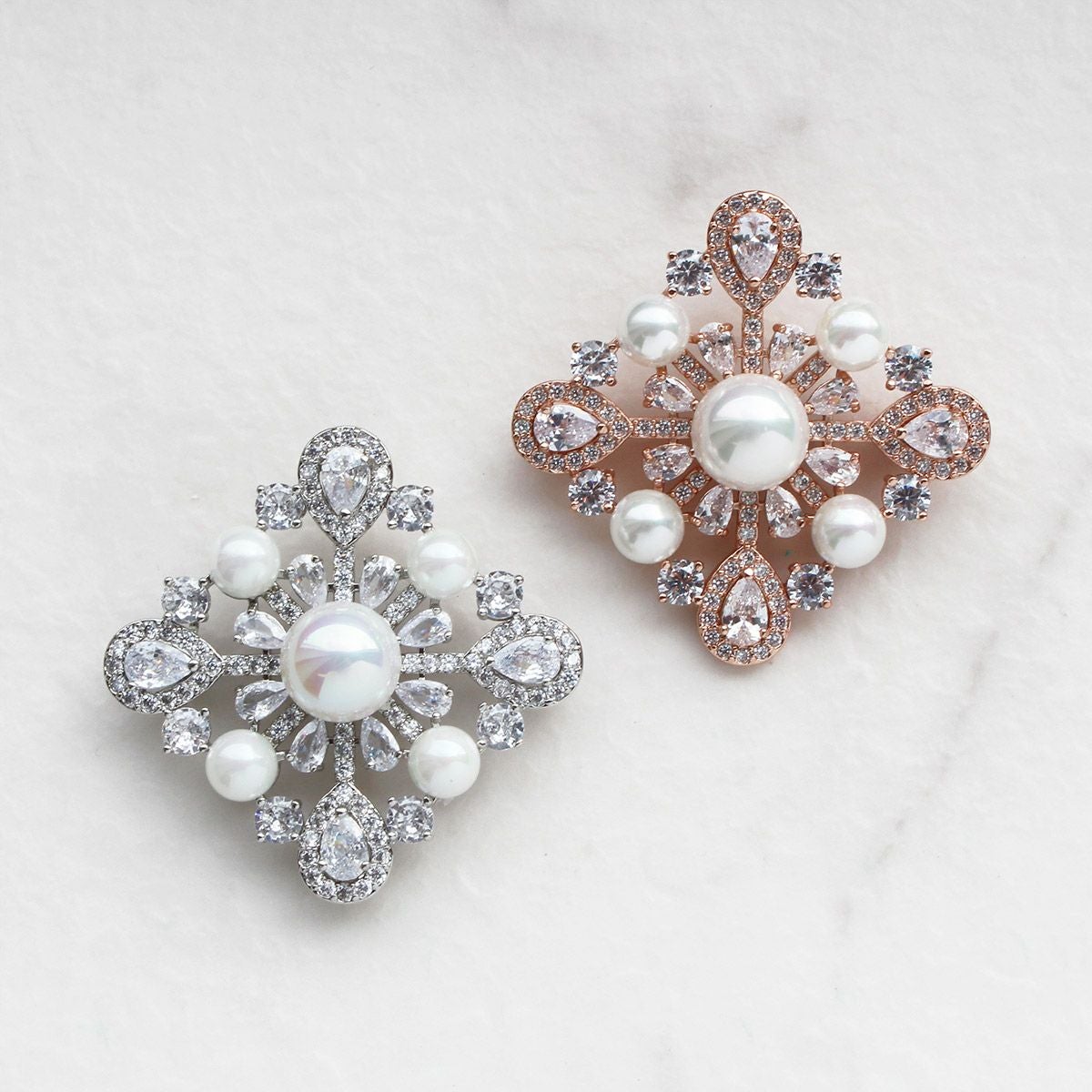 キュービックジルコニア×パールブローチ・ペンダントヘッド