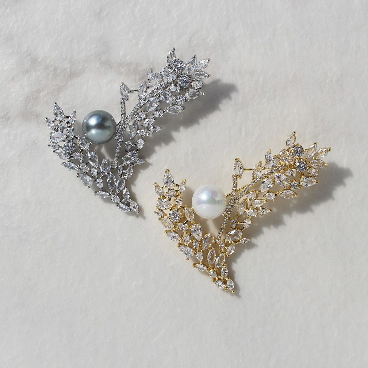 キュービックジルコニア×淡水パールボタニカルブローチ【美ST 掲載】