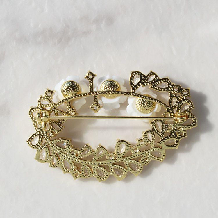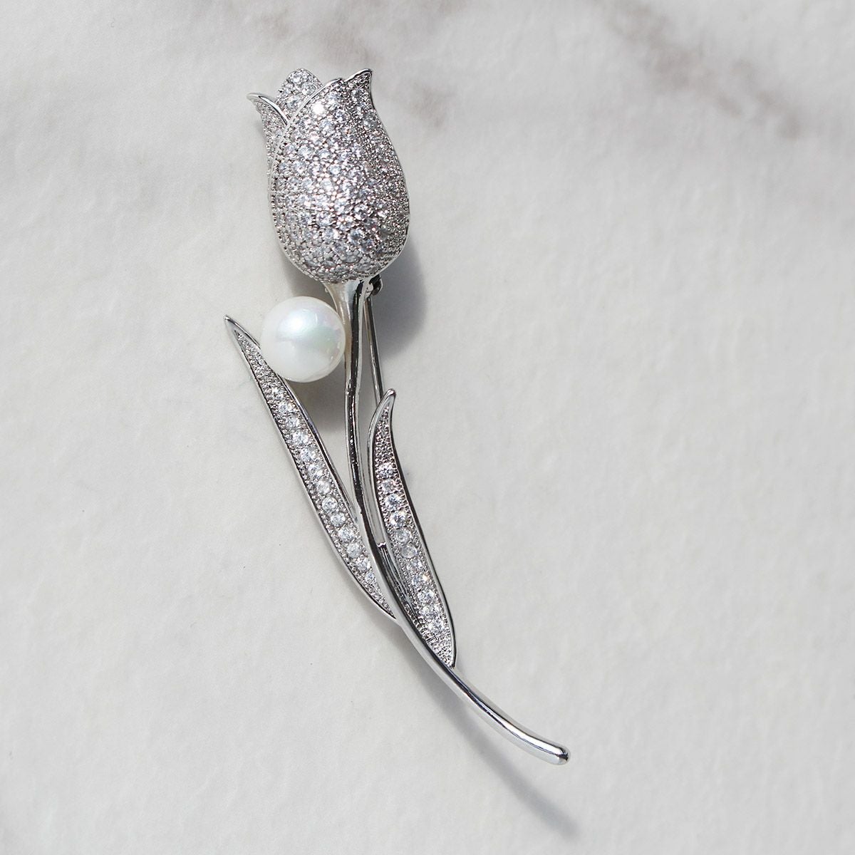 キュービックジルコニア×淡水パールカメリアモチーフブローチ