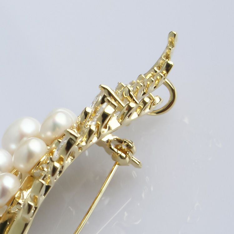 キュービックジルコニア×淡水パール麦の穂ブローチ