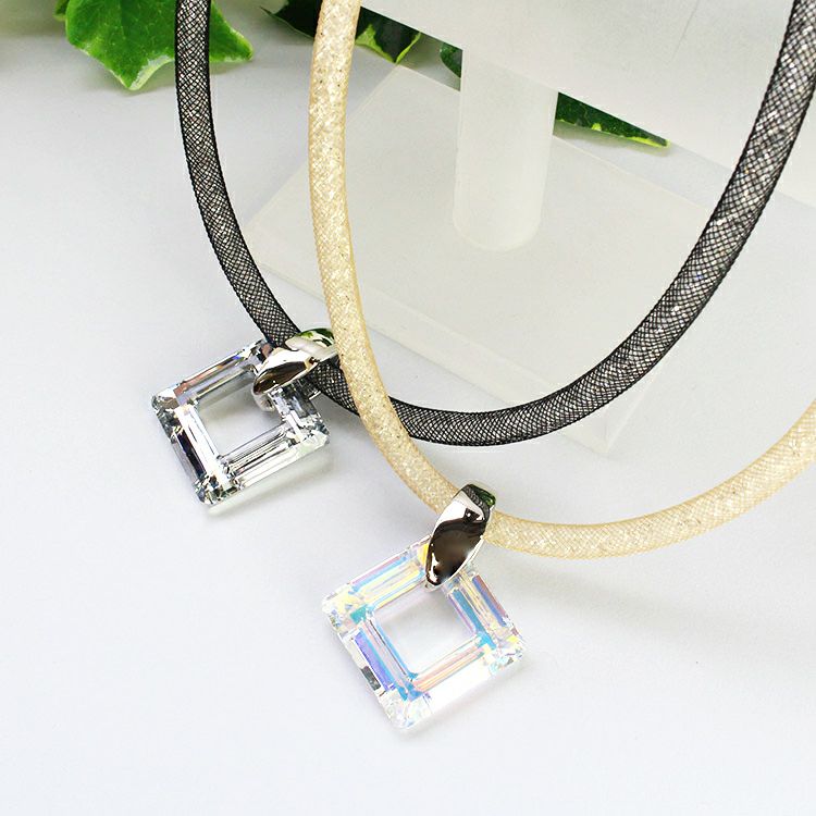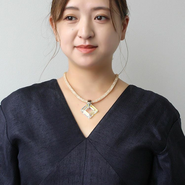 クリスタルガラススクエアモチーフネックレス/1240101-