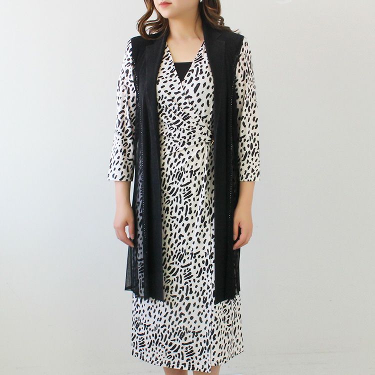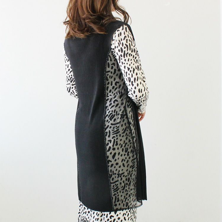 メッシュ切り替えプリーツロングジレ/2214048-