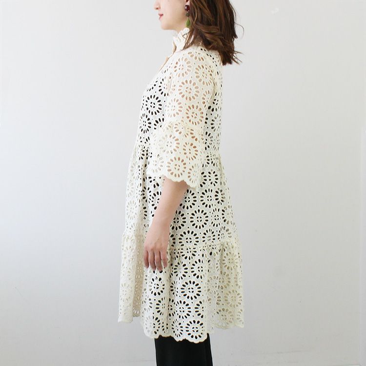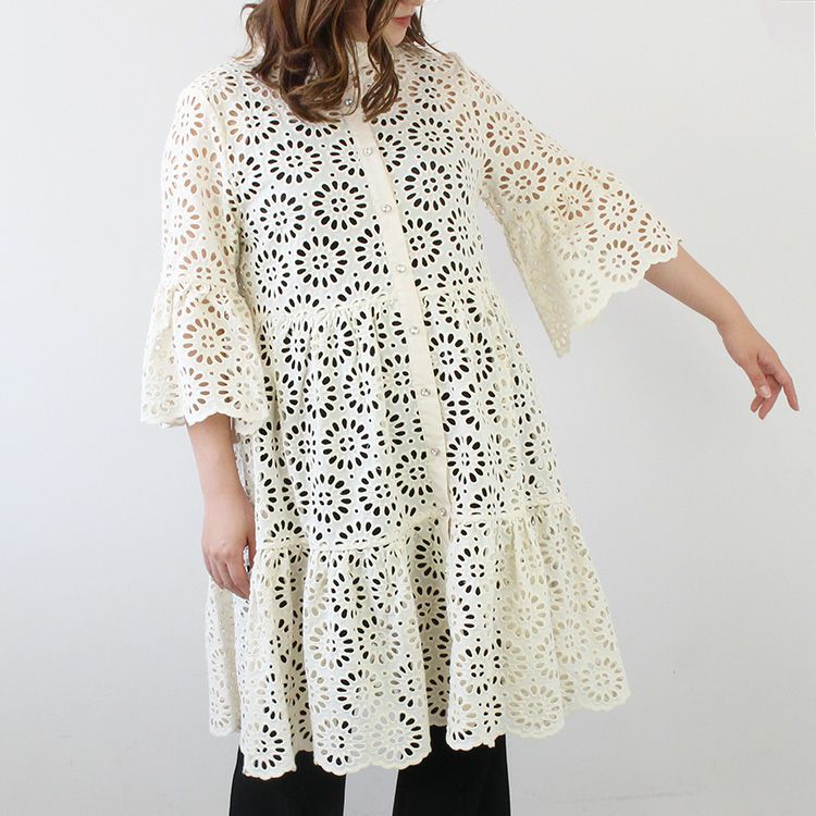 コットンレースボリュームスリーブワンピース/2214033-