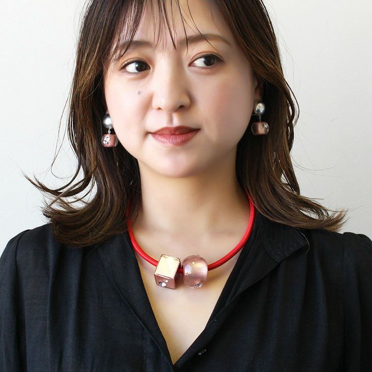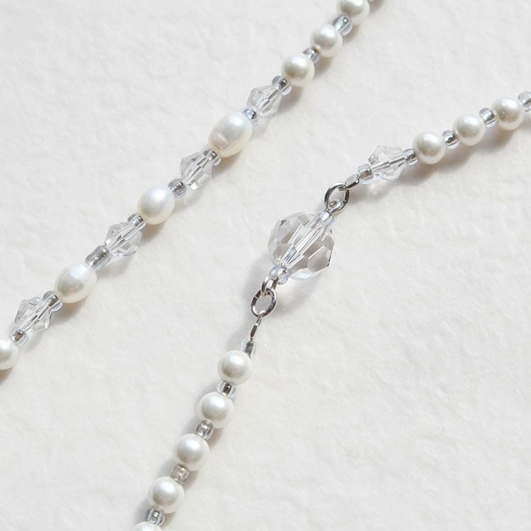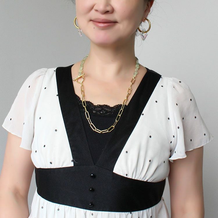 ガラスパール×チェーンコンビショートネックレス【美ST 掲載】