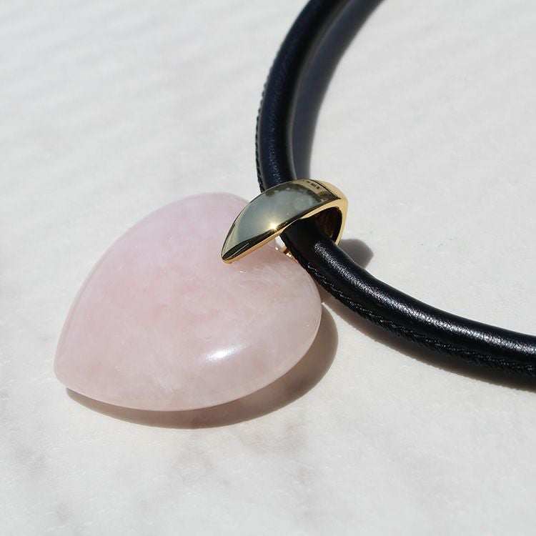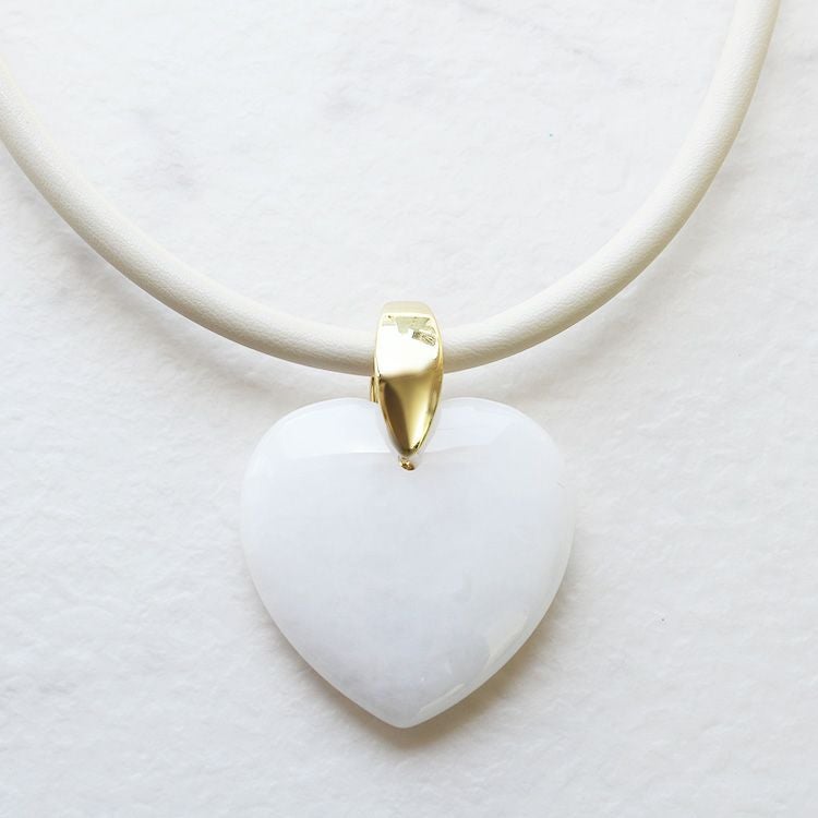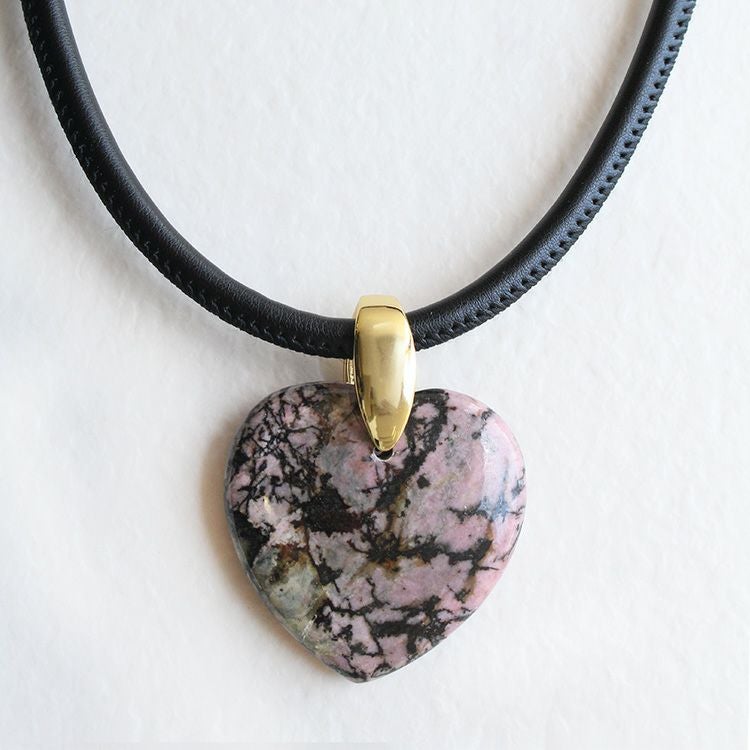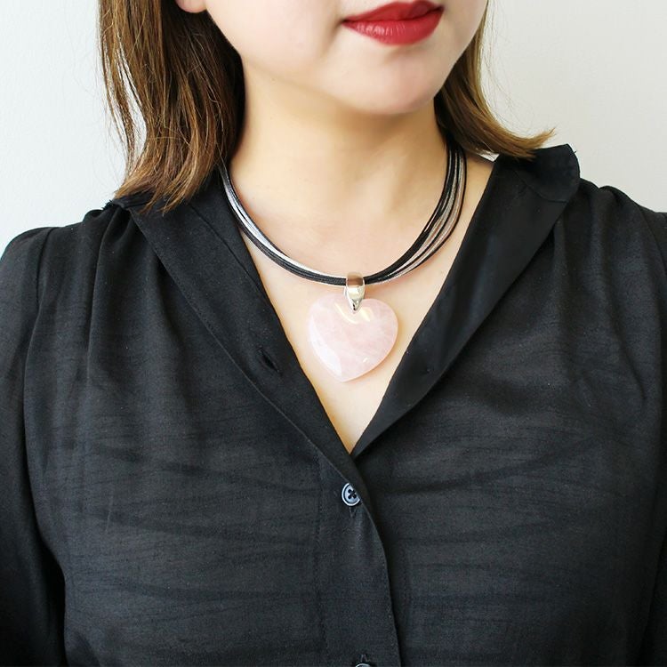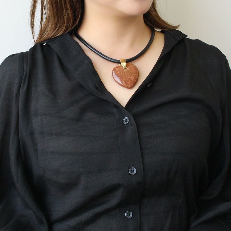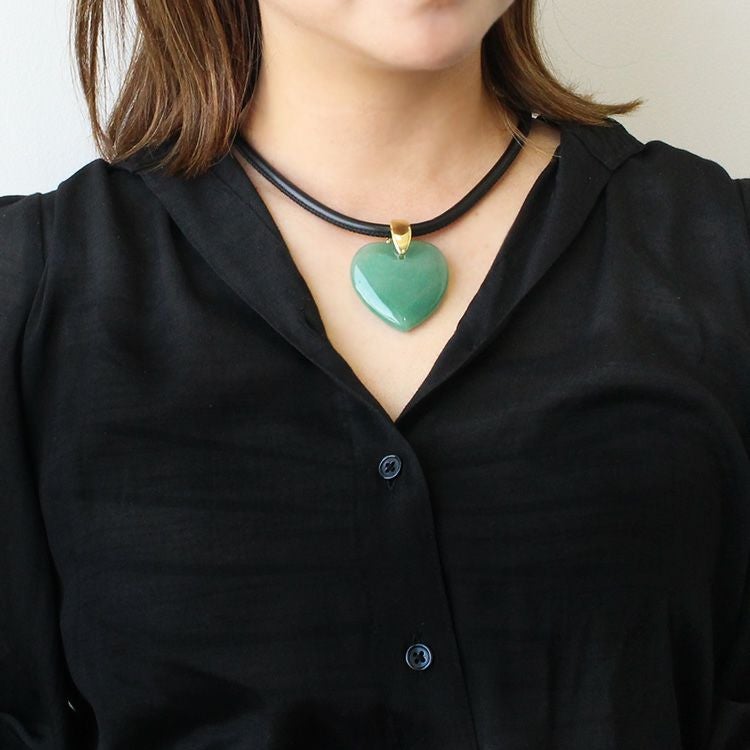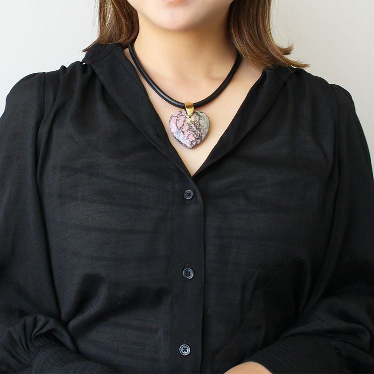 ハートシェイプジェムストーンレザーライクコードネックレス/1240082-