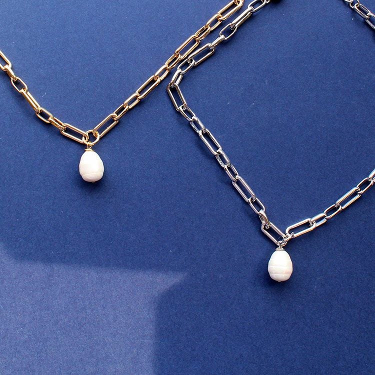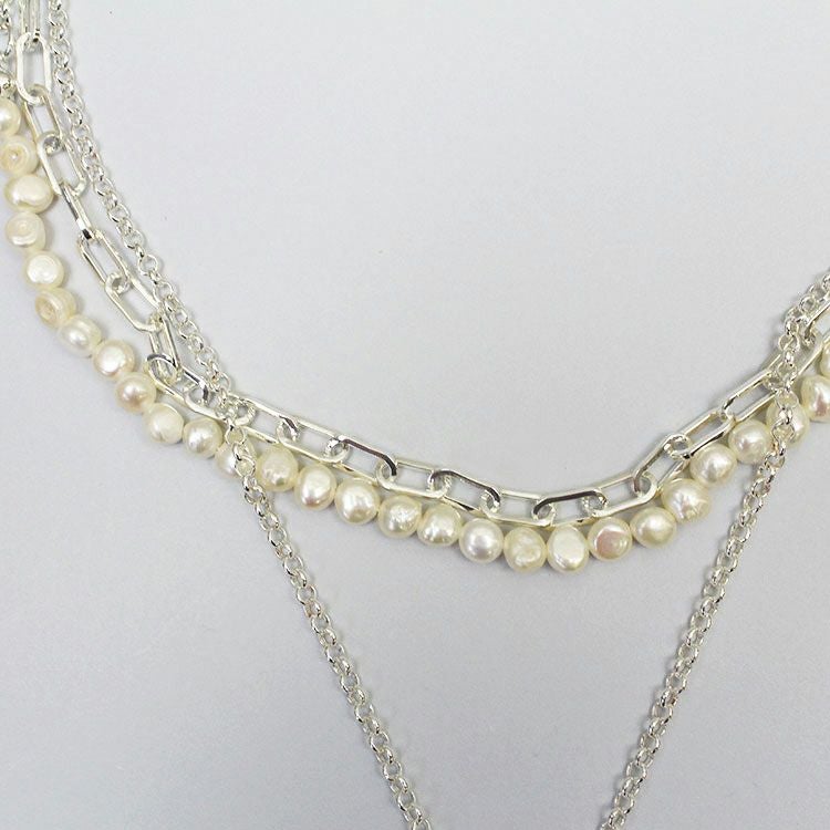 淡水パール×チェーン×ハートペンダント3連ショートネックレス/1240209