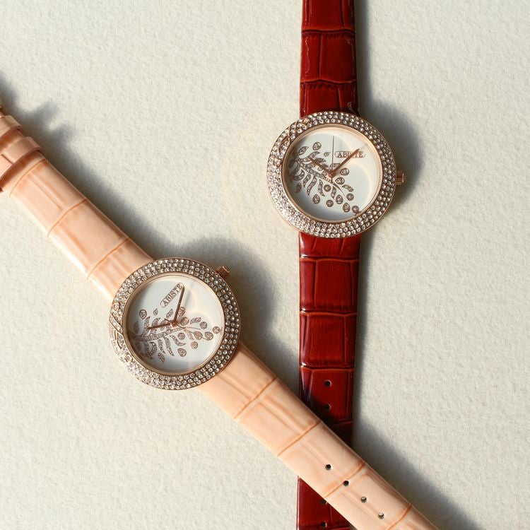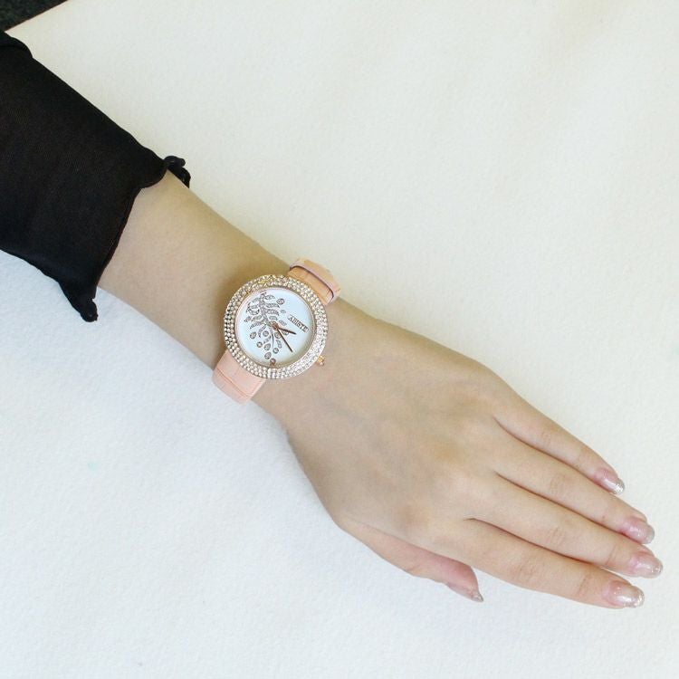 ラウンド型ビッグボタニカルフェイスエナメルベルト腕時計/9230003P