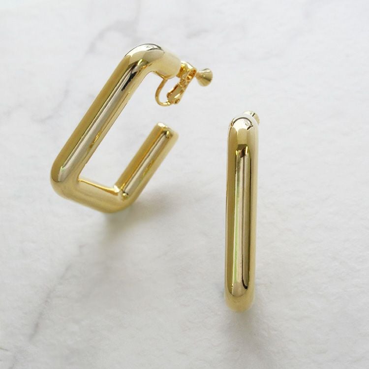 レクタングルデザインメタルフープイヤリング【VERY/GISELe 掲載】