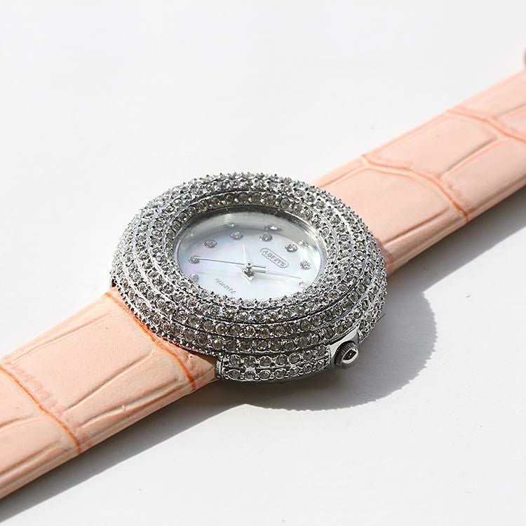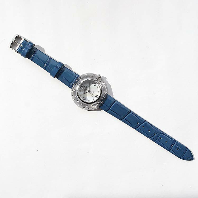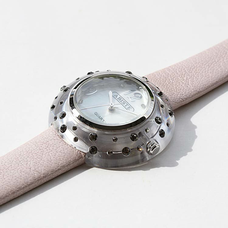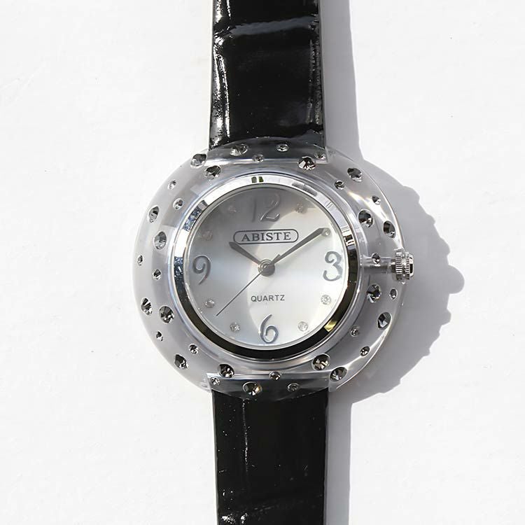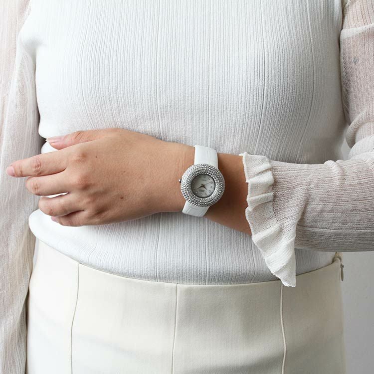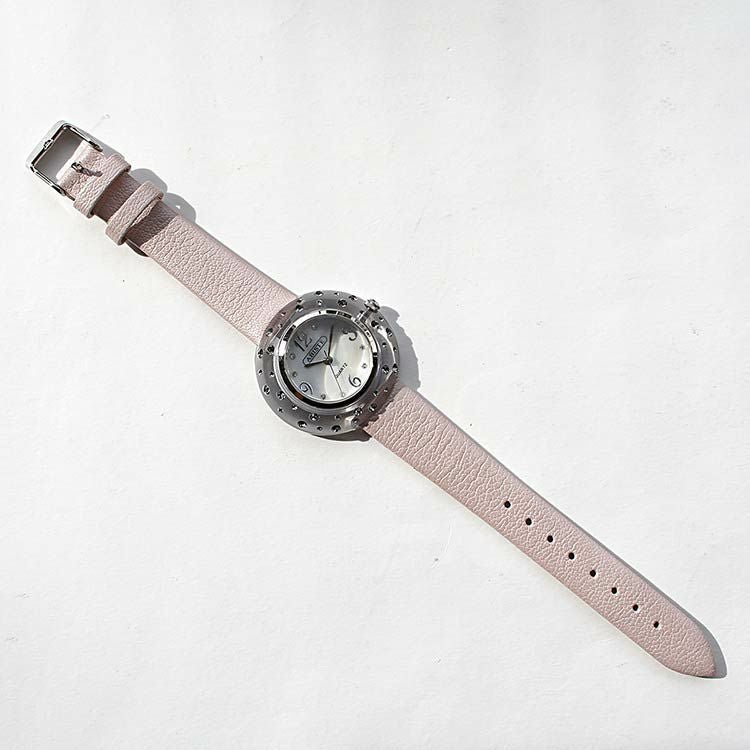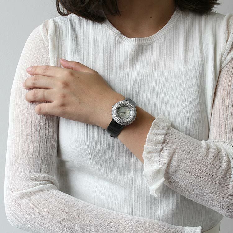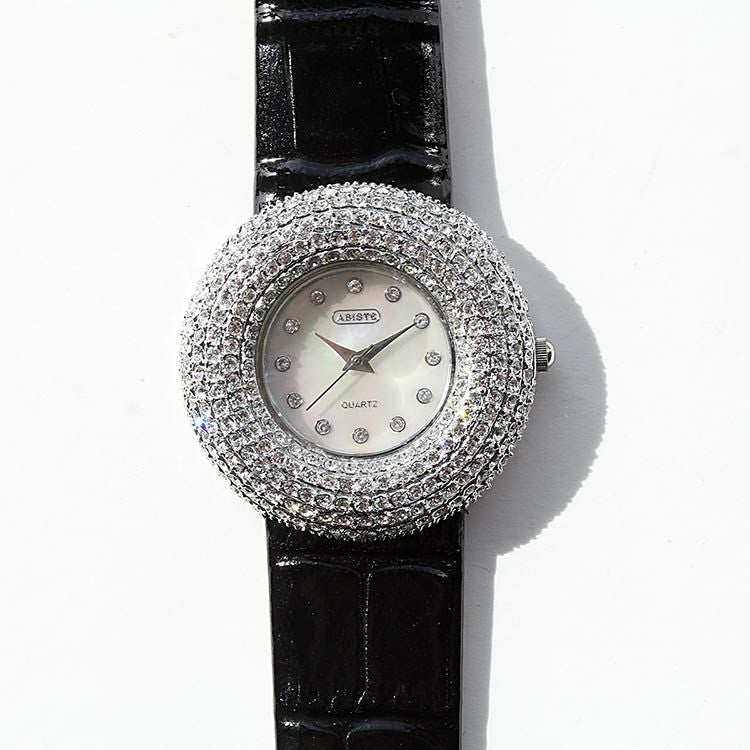 パヴェクリスタルガラスラウンドフェイスエナメルベルト腕時計/9230035S