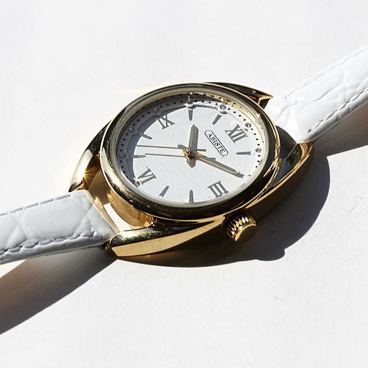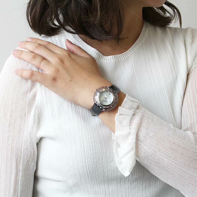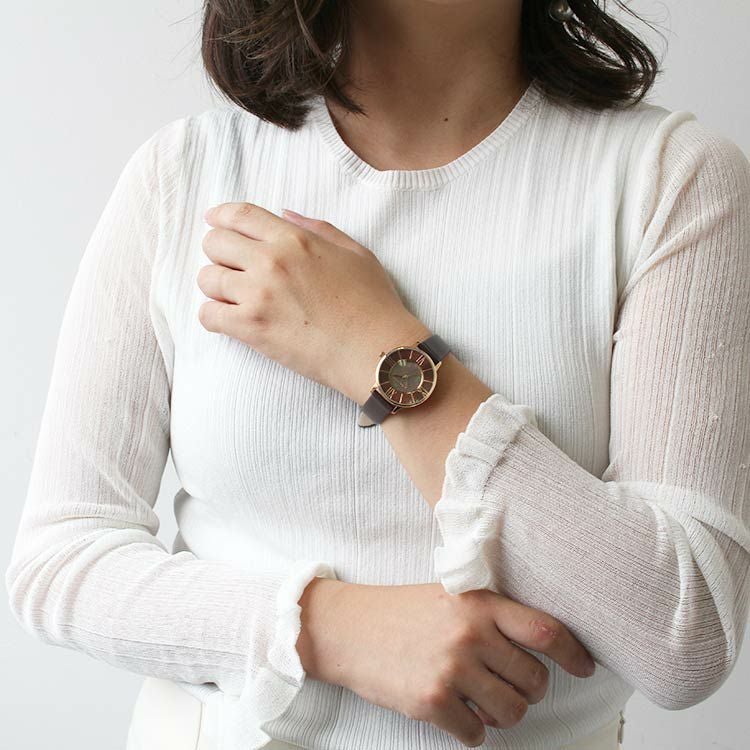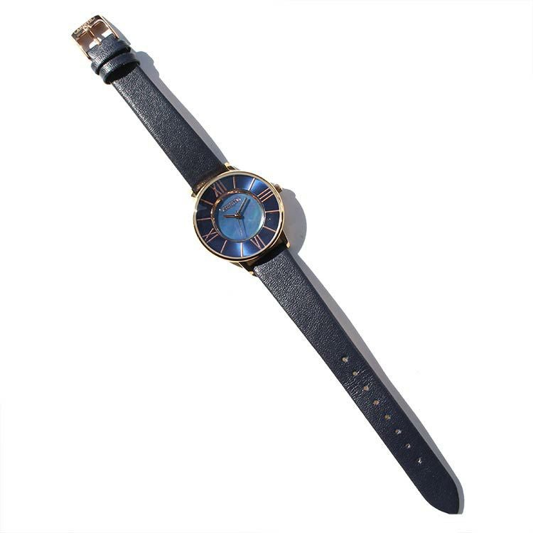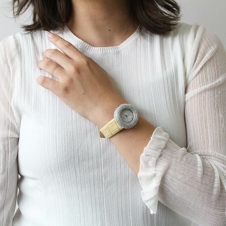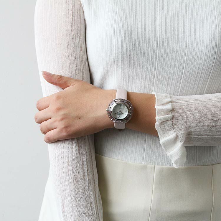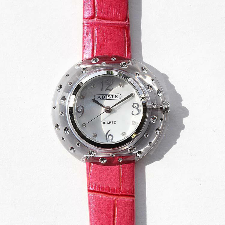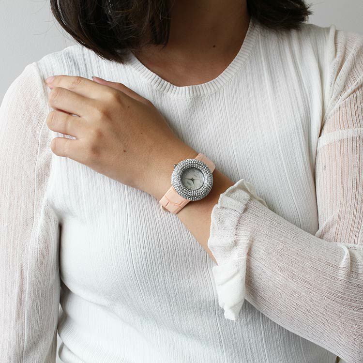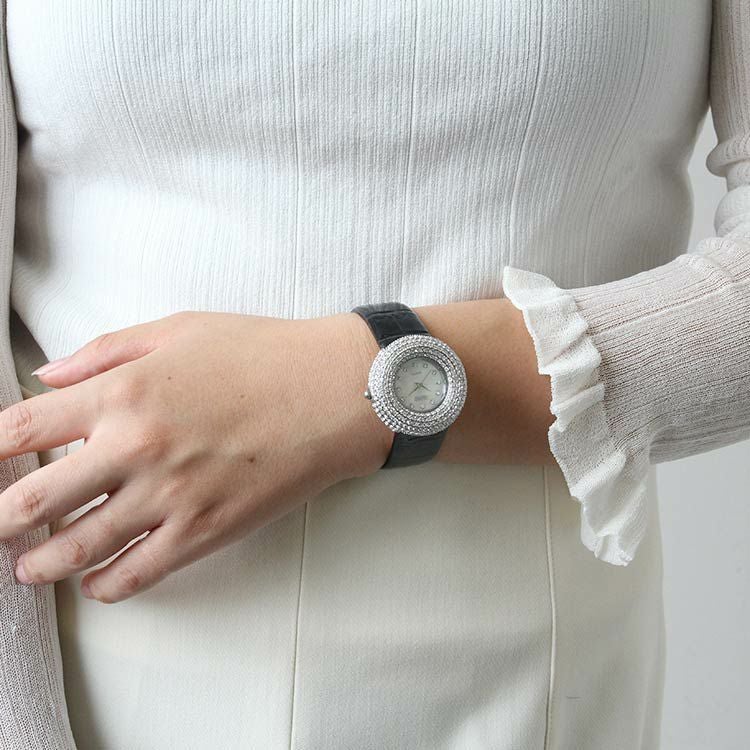 パヴェクリスタルガラスラウンドフェイスエナメルベルト腕時計/9230035S