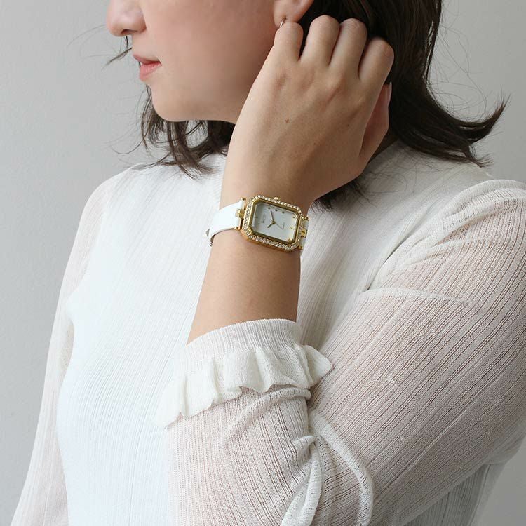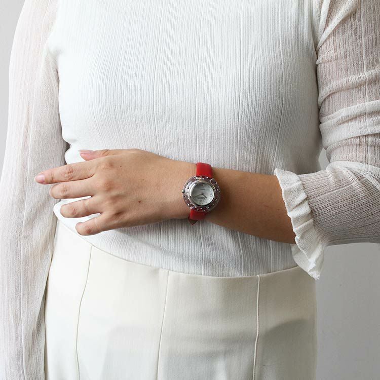 クリスタルガラススクエアフェイスエナメルベルト腕時計/9230030G