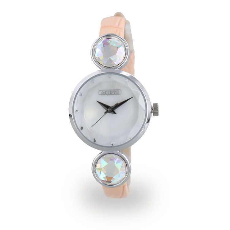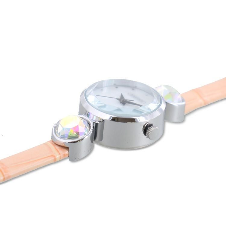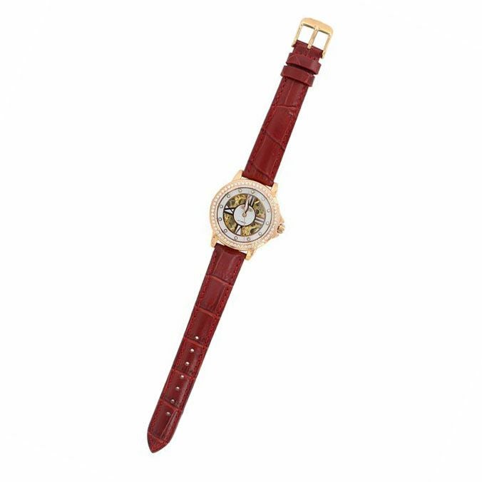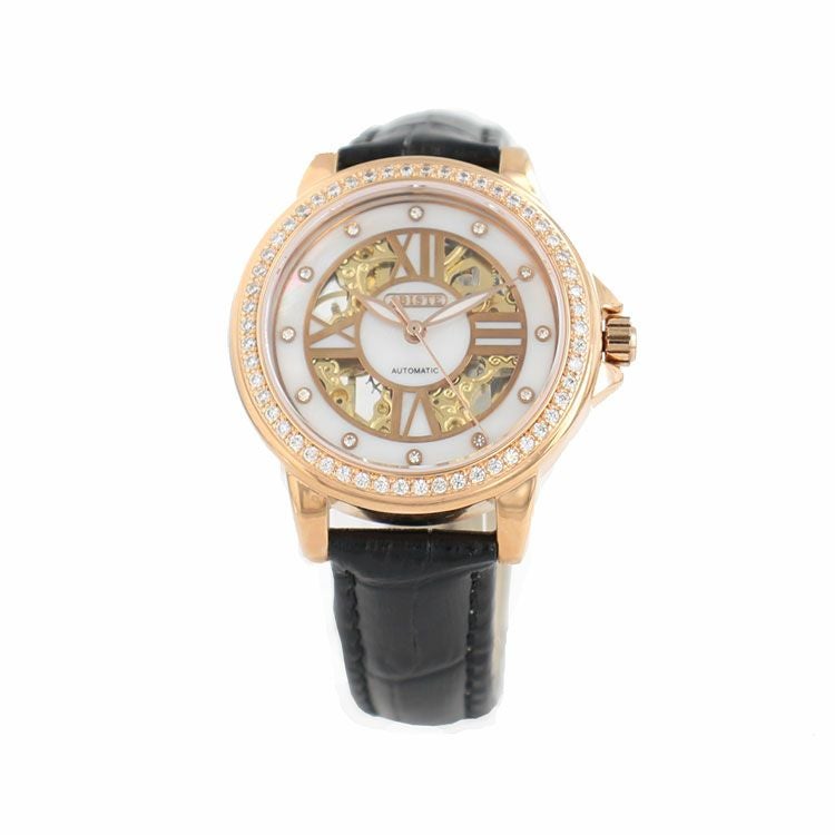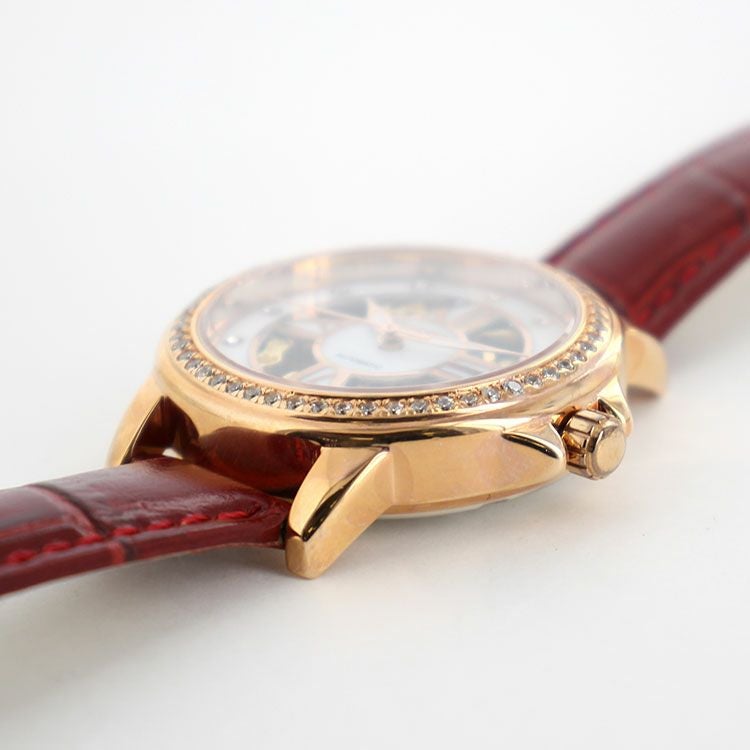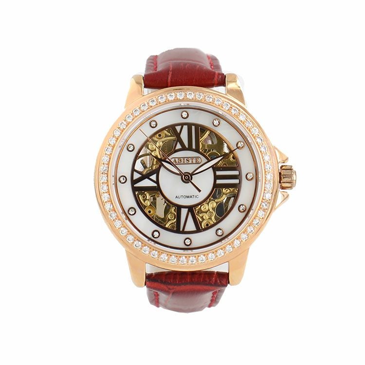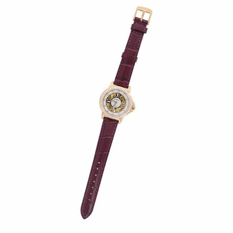 ラウンドフェイススケルトンキュービックジルコニア革ベルト腕時計/9160017
