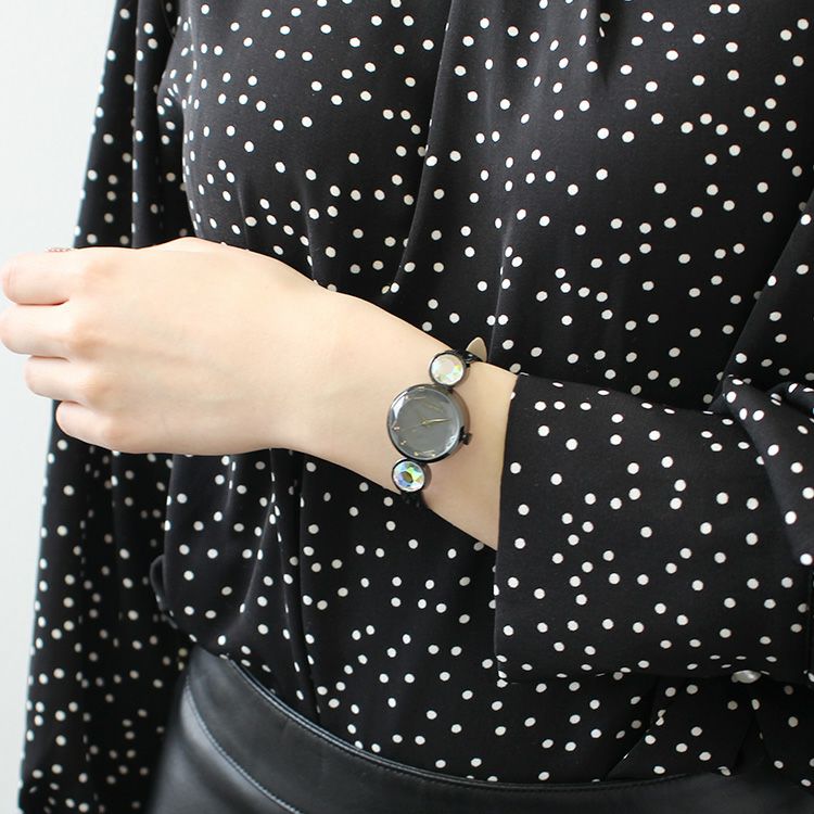 ラウンドフェイス型押しエナメル細ベルト腕時計/9220001