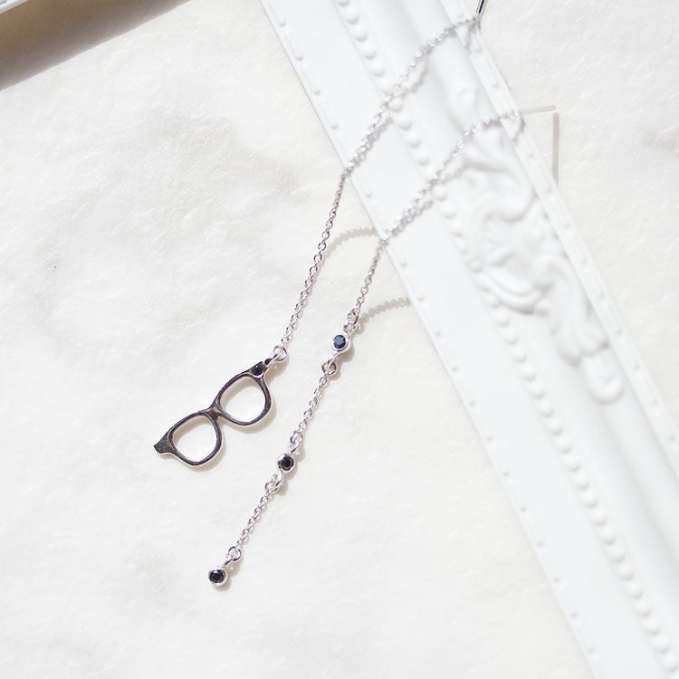 《SV925》メガネモチーフアシンメトリーアメリカンピアス/3021043S