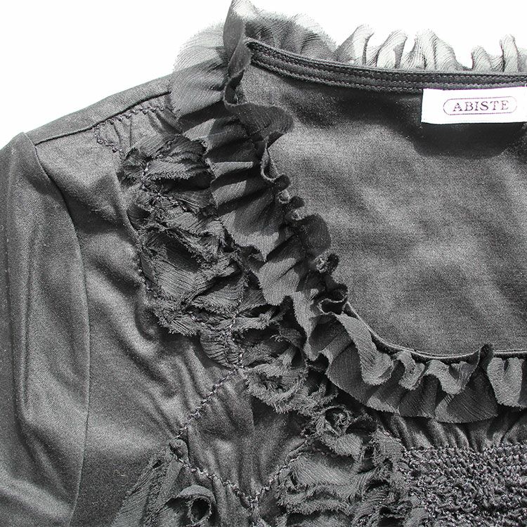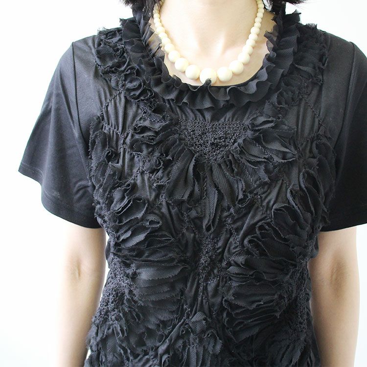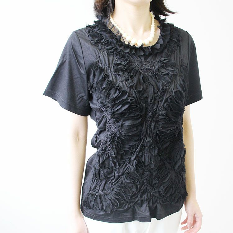 【ABISTE】《手洗い可/日本製》楊柳テープ刺繍Tシャツ/2212037-