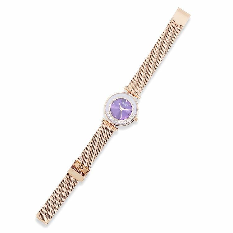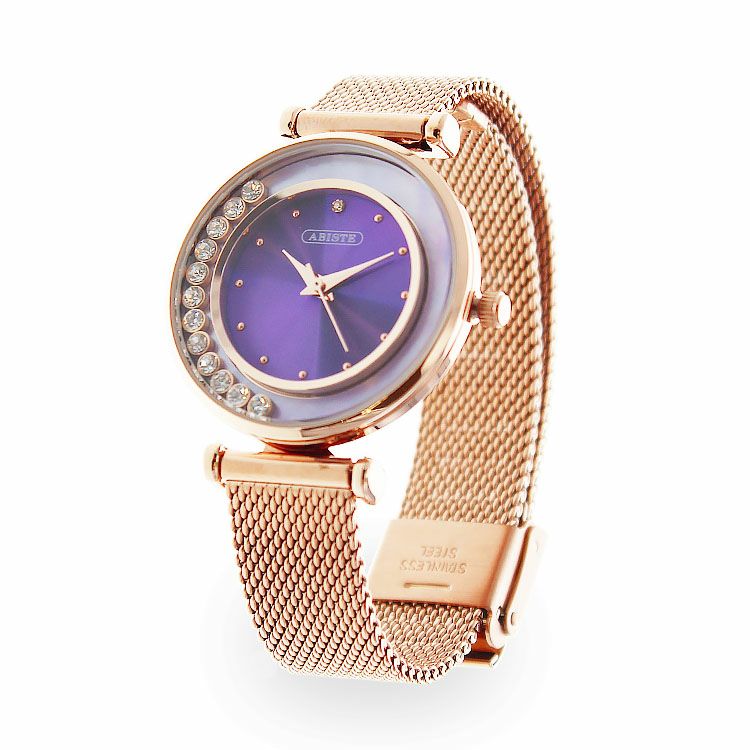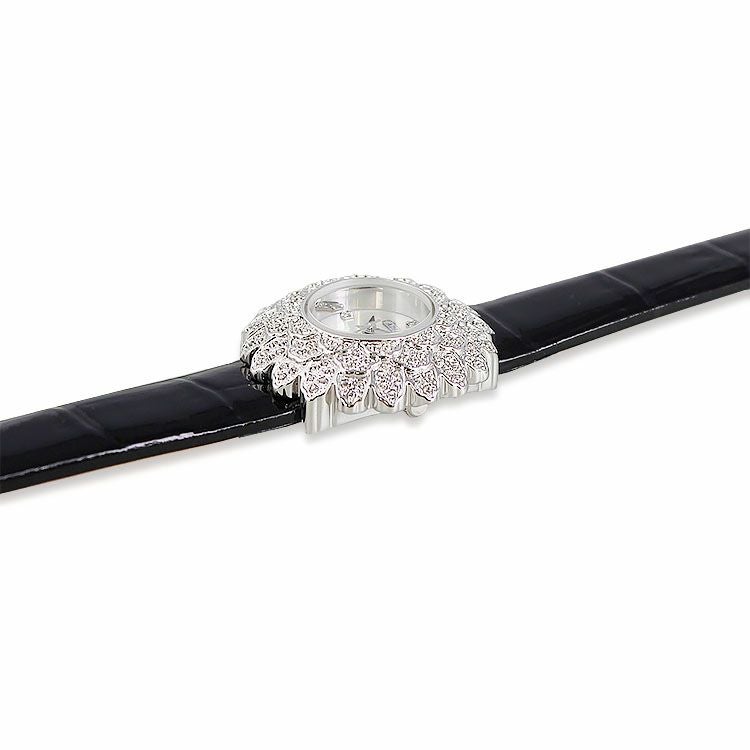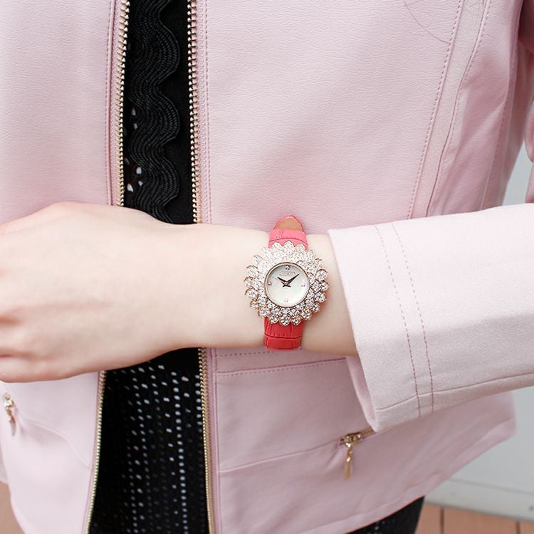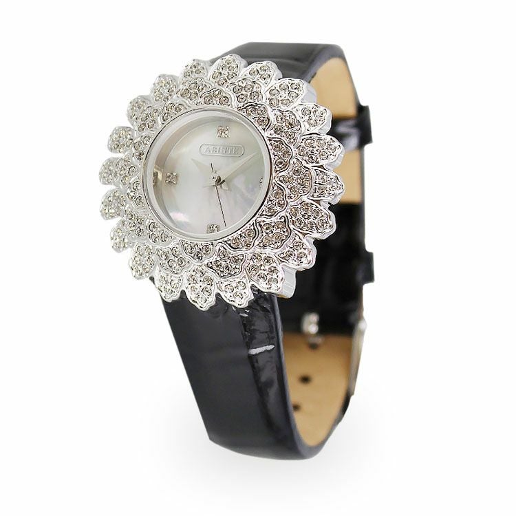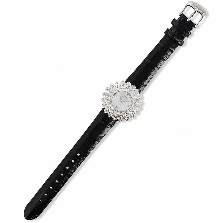 クリスタルガラスラウンドフェイス牛革ベルト腕時計/9020003