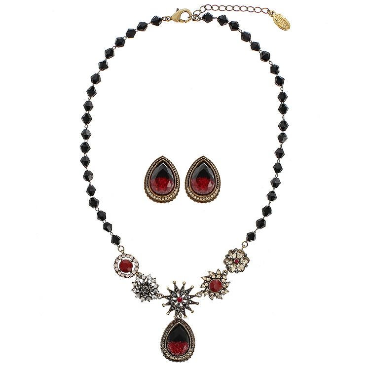 アンティーク調ドロップモチーフネックレス&イヤリングセット/1191012-2