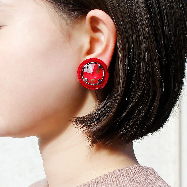 メッシュフラワーモチーフクリスタルガラスイヤリング/3191001