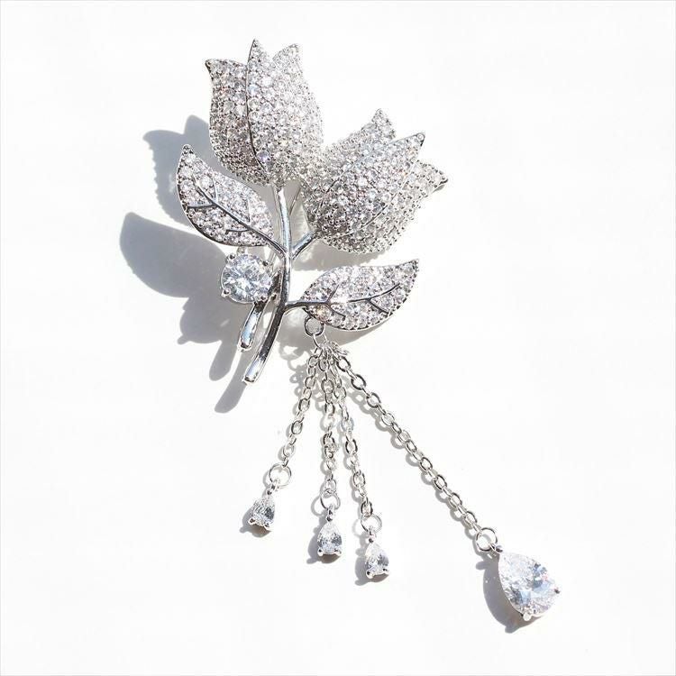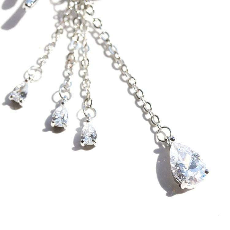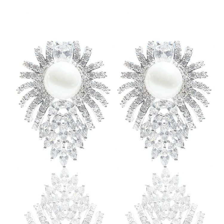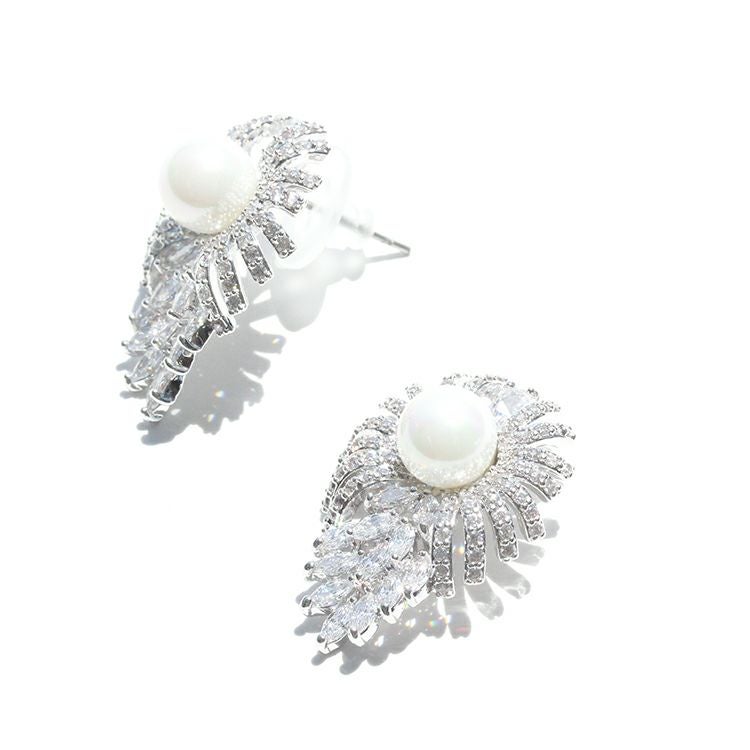キュービックジルコニアリーフモチーフパールピアス/3190048