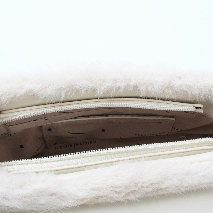 ショルダーベルト付きエコファーアシンメトリーハンドバッグ