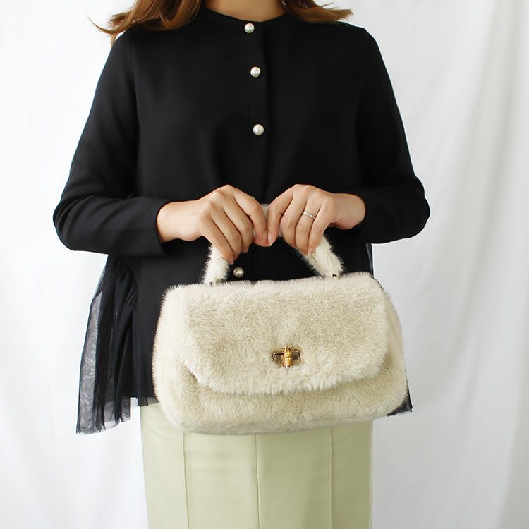 ショルダーベルト付きフラッフィーハンドバッグ