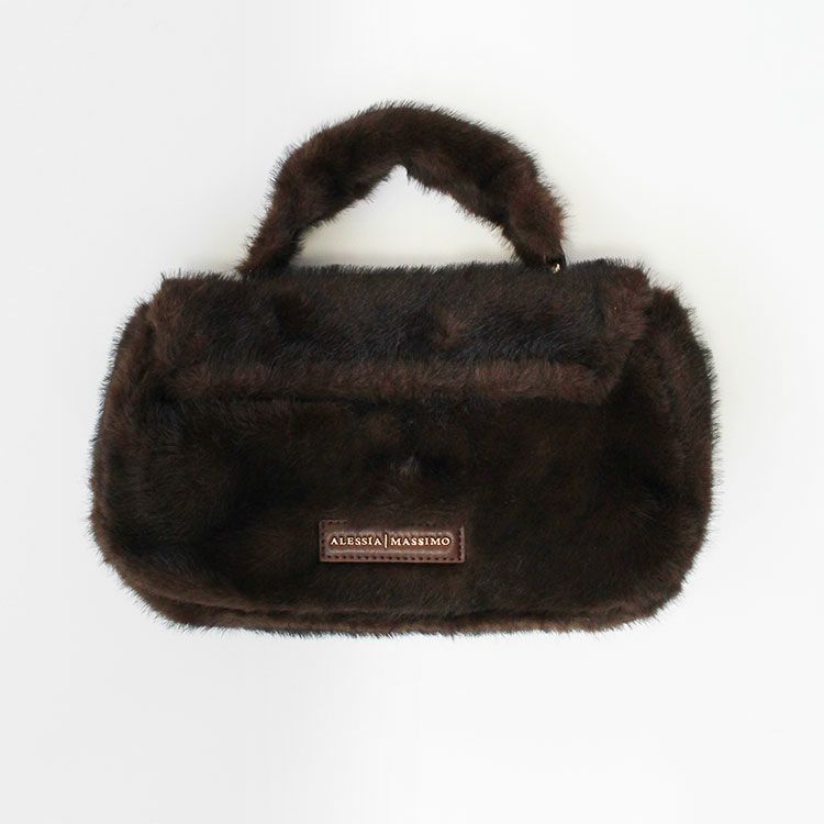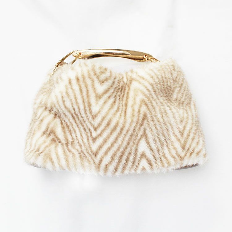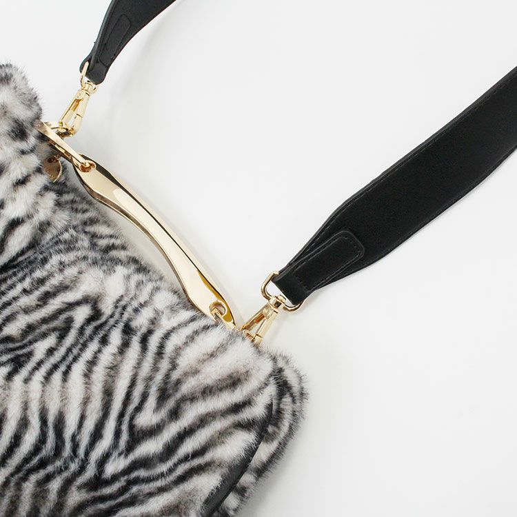 ショルダーベルト付きメタルハンドルエコファーハンドバッグ