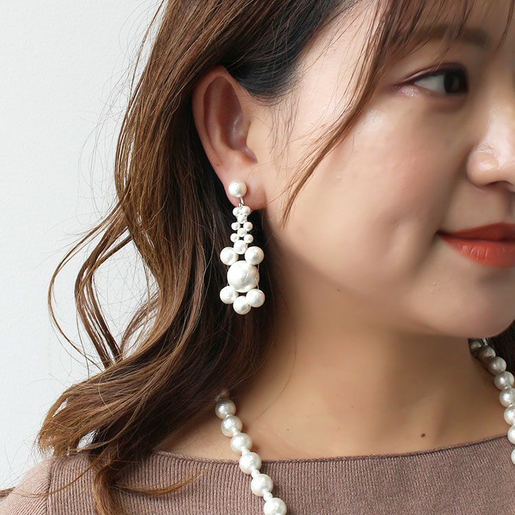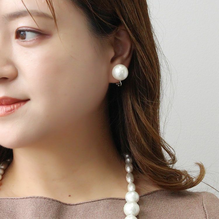 日本製コットンパールデザインイヤリング
