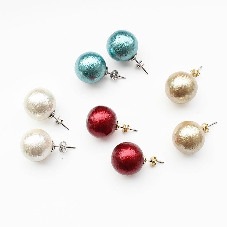 日本製コットンパールデザインピアス