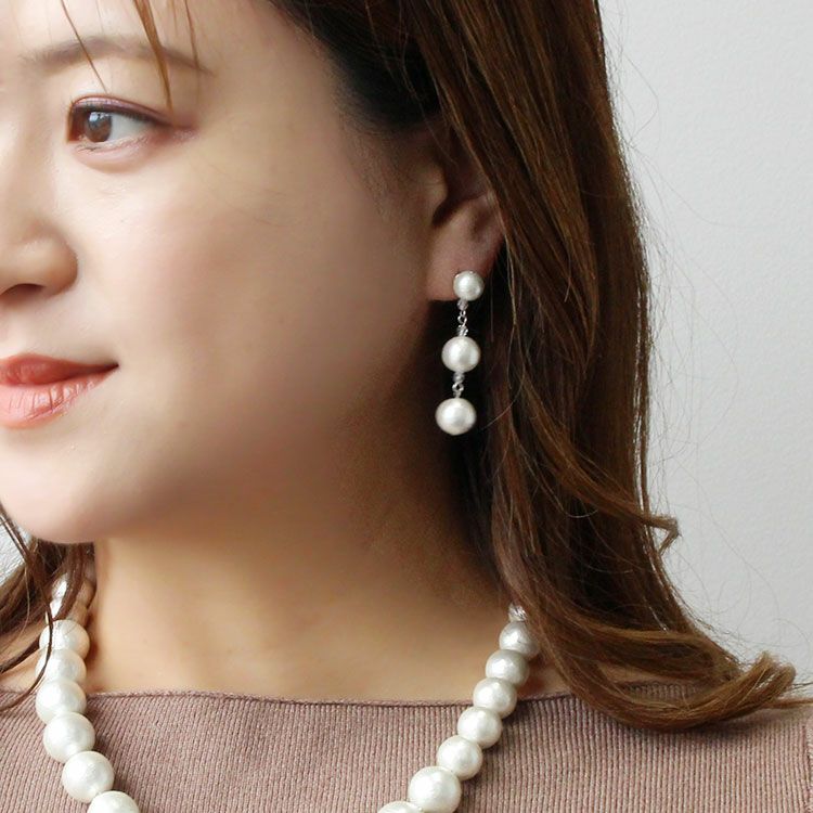 日本製コットンパールロングピアス