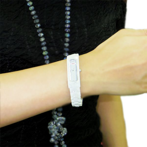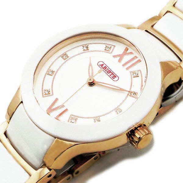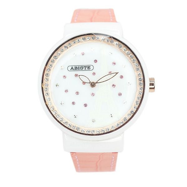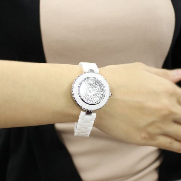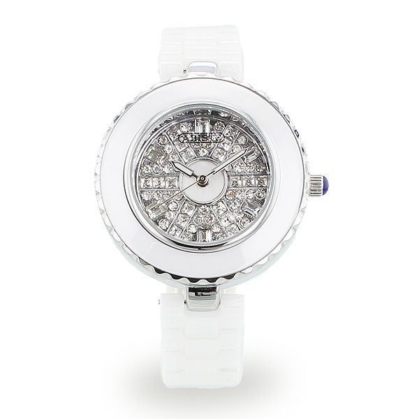 ラウンドフェイスCZセラミックベルト腕時計/9400084