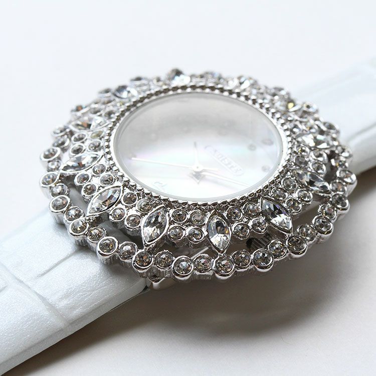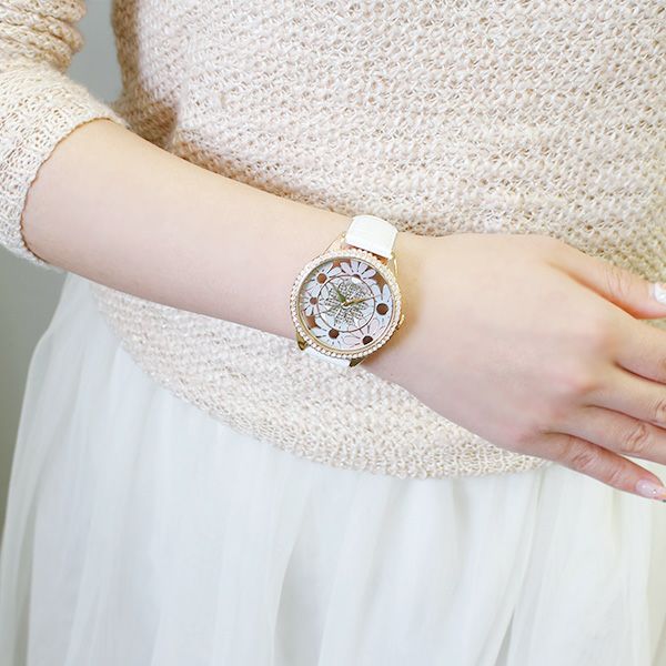 フラワーモチーフスケルトンビッグフェイス クリスタルガラスエレメンツ腕時計/9170032
