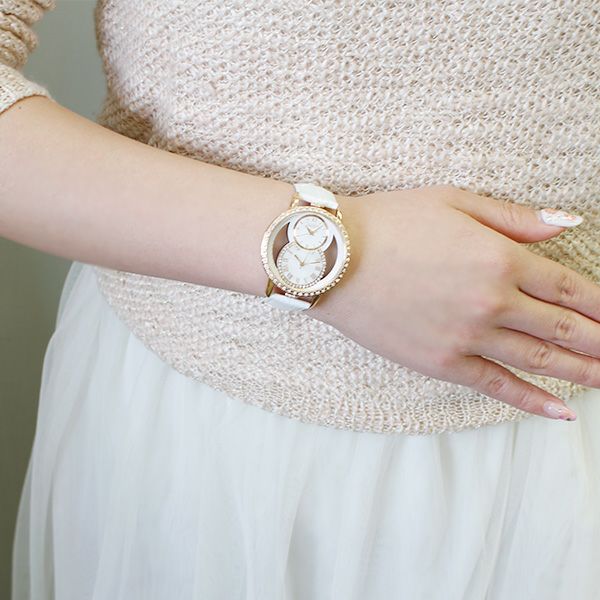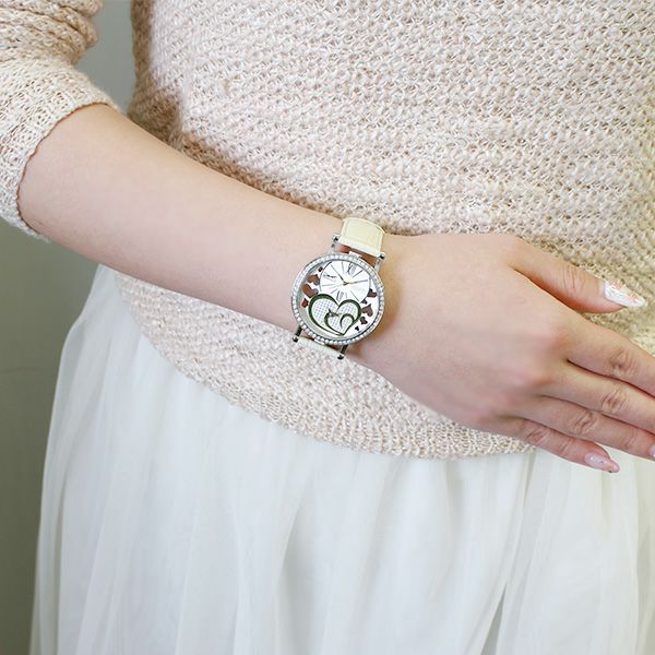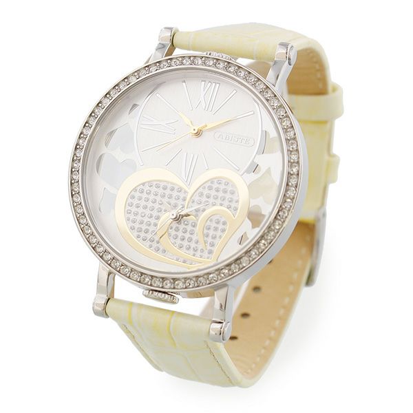 ハートモチーフ クリスタルガラスエレメンツ ビッグフェイスデュアル腕時計/9170033