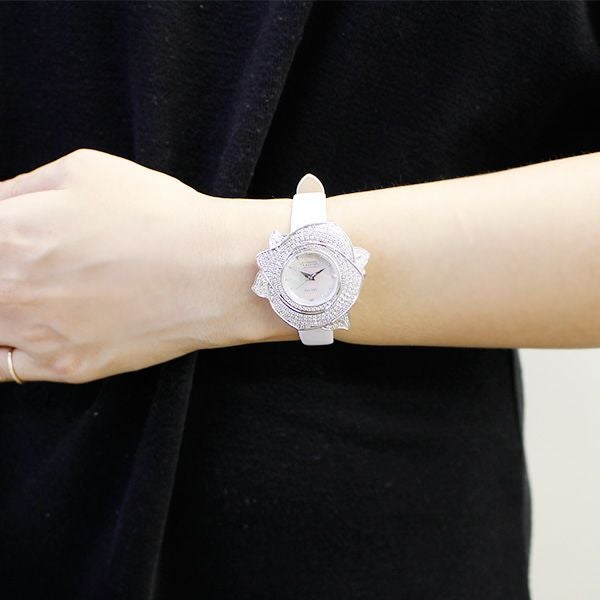 ローズモチーフキュービックジルコニア細ベルト腕時計/9161001