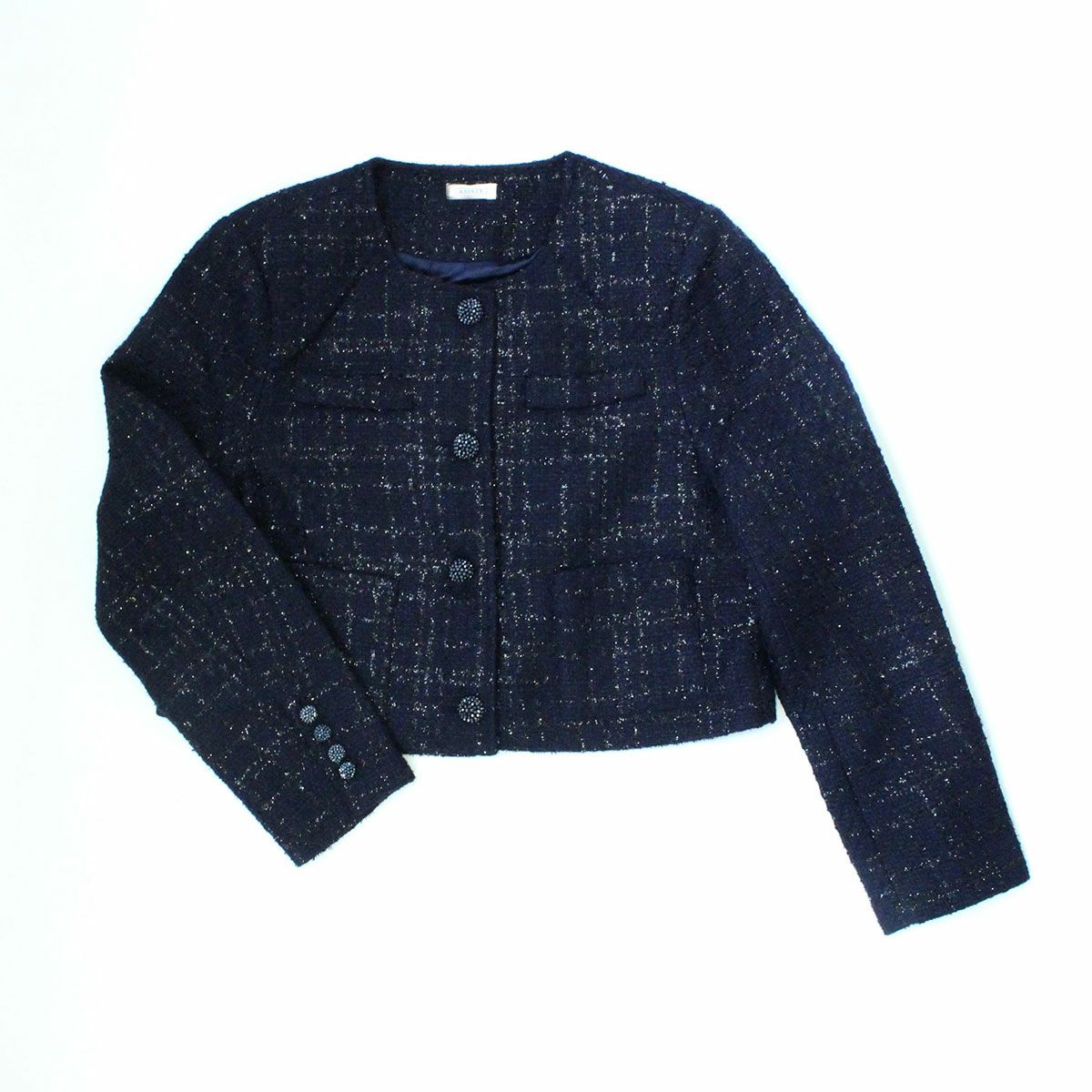 《セットアップ可能》ツィードノーカラージャケット