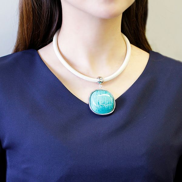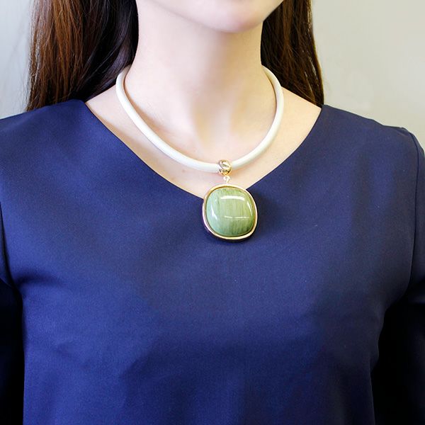 イタリア製レザー調コード×アクリルネックレス/1170325