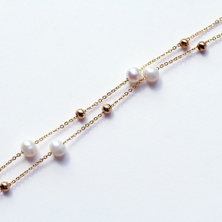 やわらかくなめらかな輝きを放つ淡水パールとゴールドボールの絶妙な組み合わせがオシャレなステーションネックレス。繊細かつ華奢なデザインのさりげない美しさが魅力です。襟元に綺麗に映えるデザインで、上品な印象。カジュアルはもちろん、オフィス使い、フォーマルまでさまざまなシーンでお使いいただけます。