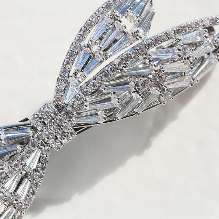 クリアカラーのキュービックジルコニアが煌めくバレッタ。「縁」や「結ぶ」を意味するリボンモチーフはハレの日のアクセサリーにもおすすめ。スタイリッシュな変形リボン型。