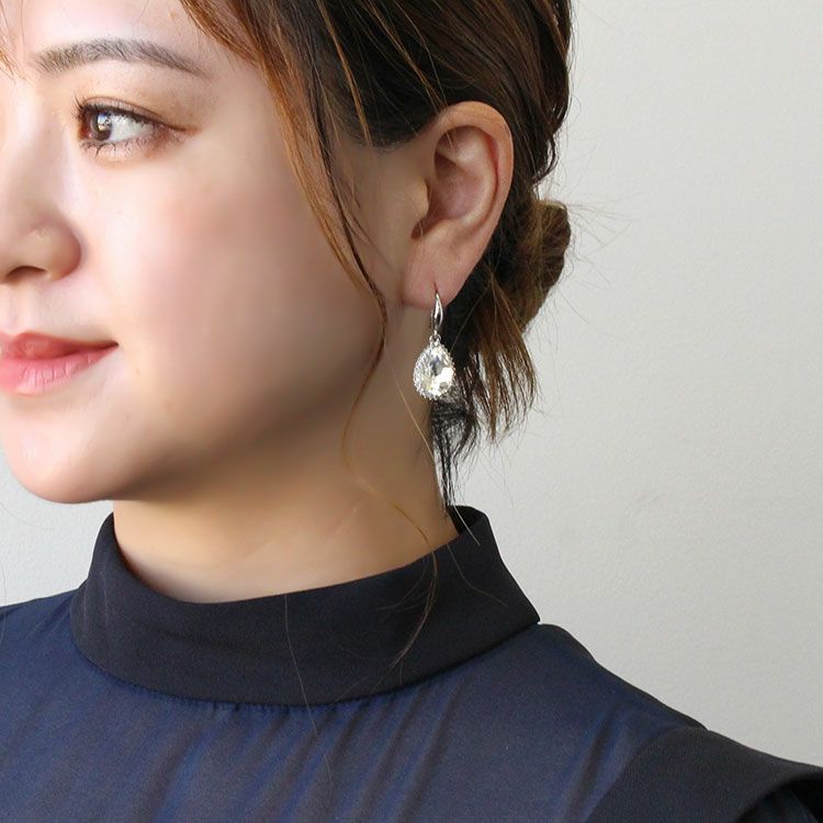 クリスタルガラスが華やかに耳元を飾るドロップモチーフピアス。オールシーズン使えるクリアガラスは、普段使いからパーティーシーンまで幅広くお使いいただけます。