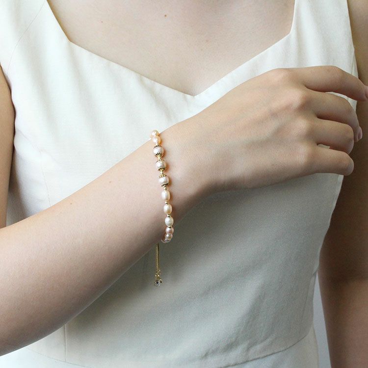 華やかな淡水パールブレスレット。やわらかくなめらかな輝きを放ち、一粒一粒表情の異なる淡水パールは、唯一無二の存在。自然の美しさが凝縮された輝きをお楽しみいただけます。カジュアルからフォーマルまでさまざまなシーンでご利用いただけます。