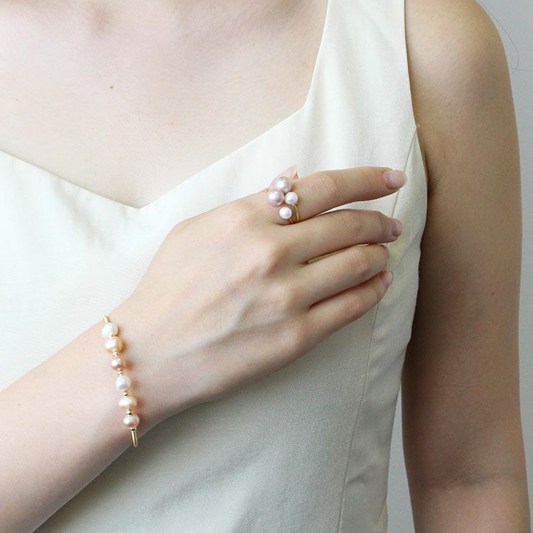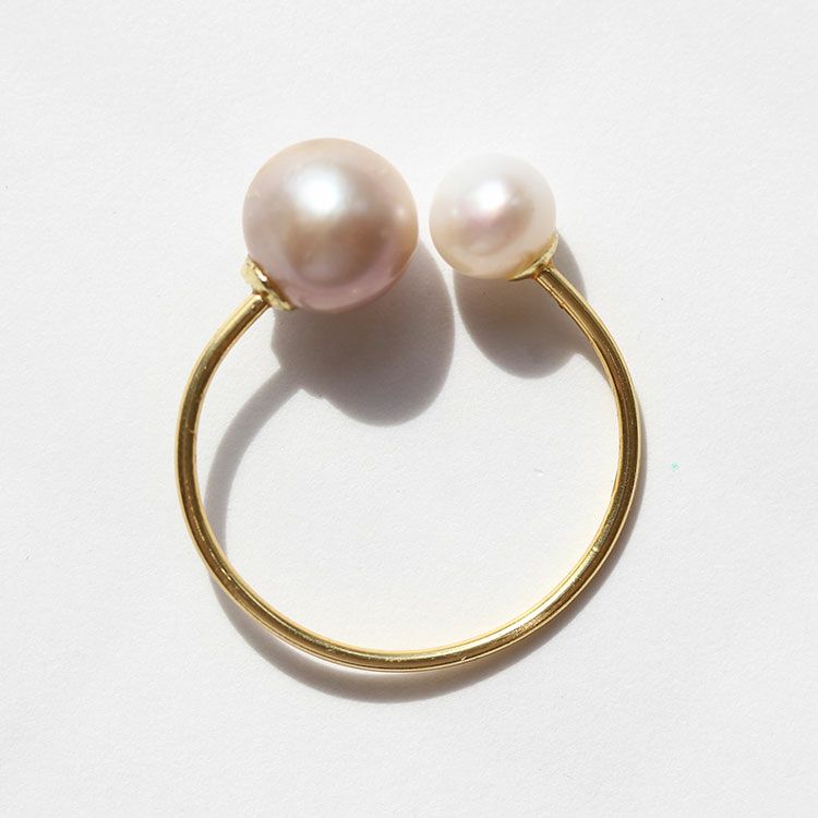 大小パールの組み合わせが洗練されたデザインのツインパールリング。コロンとした淡水パールがキュートでエレガントな雰囲気を演出しています。パーティーからデイリーまで幅広くご利用いただけます。