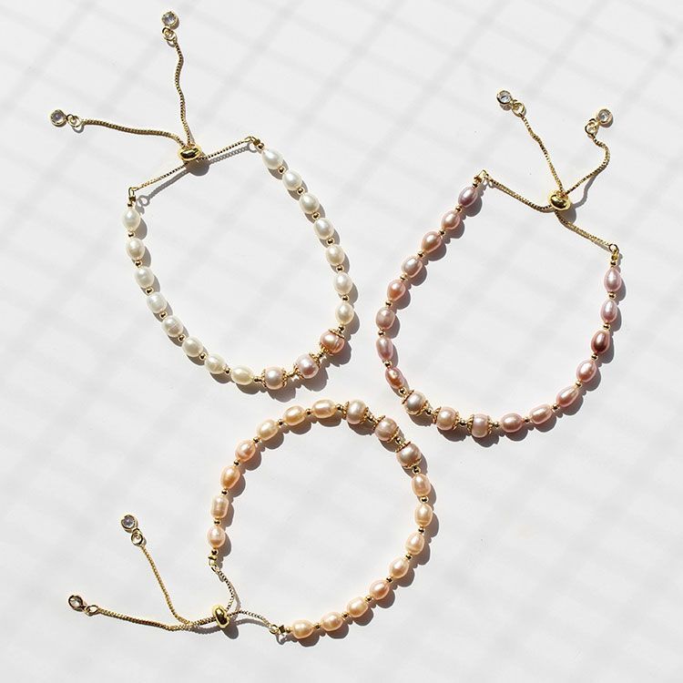 華やかな淡水パールブレスレット。やわらかくなめらかな輝きを放ち、一粒一粒表情の異なる淡水パールは、唯一無二の存在。自然の美しさが凝縮された輝きをお楽しみいただけます。カジュアルからフォーマルまでさまざまなシーンでご利用いただけます。