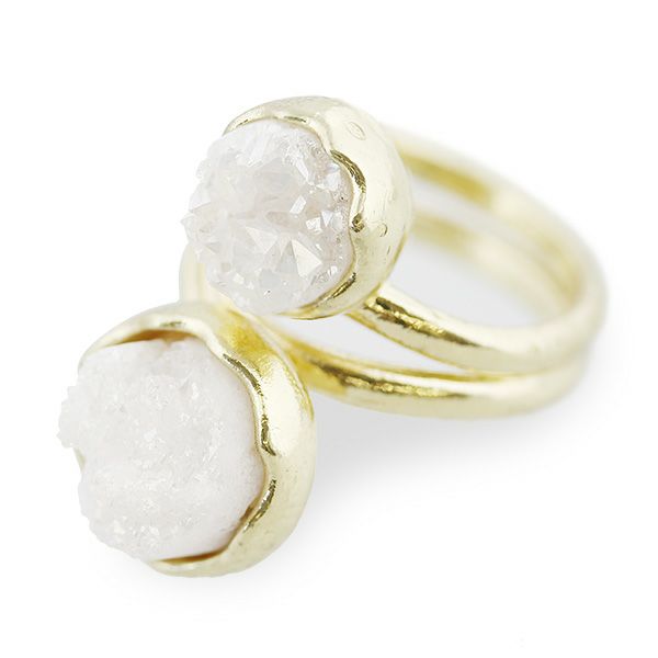 『ドゥルージー』とは、天然石の母岩や結晶の表面を細かい結晶が覆った状態のものを指し、表面がキラキラと輝く様子が魅力的な半貴石。天然の凹凸があり、きらめき方にもそれぞれ個性がある唯一無二の素材です。 そんな個性的なストーンとして世界各国で人気を集めているドゥルージーアクセサリーは、リングやバングルとの重ね付けコーデがおすすめです。