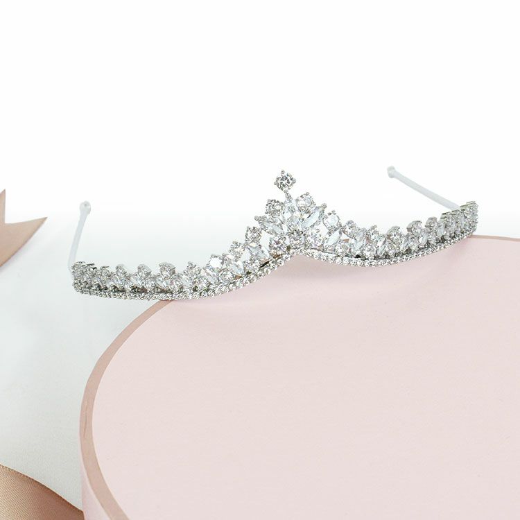 クラシカルでエレガント、かつ気品が漂うV字カーブのプリンセスティアラ。大粒キュービックジルコニアの煌めきがブライダルシーンやステージなどでの特別な装いを彩ります。
