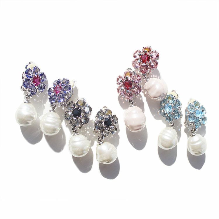 マジョルカパール×キュービックジルコニアフラワーイヤリング/3021019
