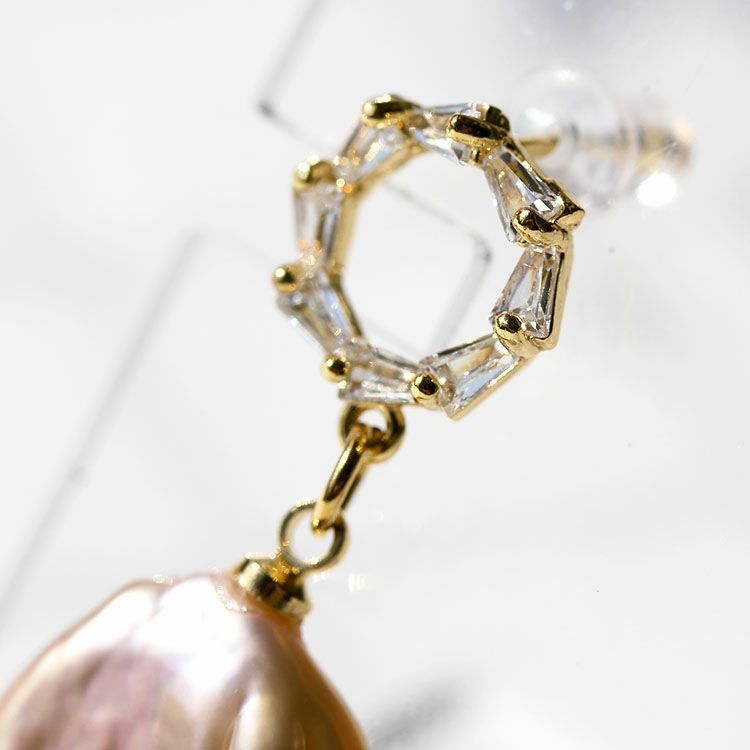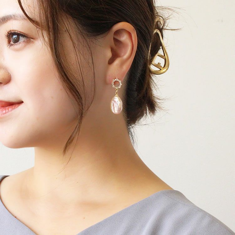 平ドロップ型淡水パールピアス/3241014