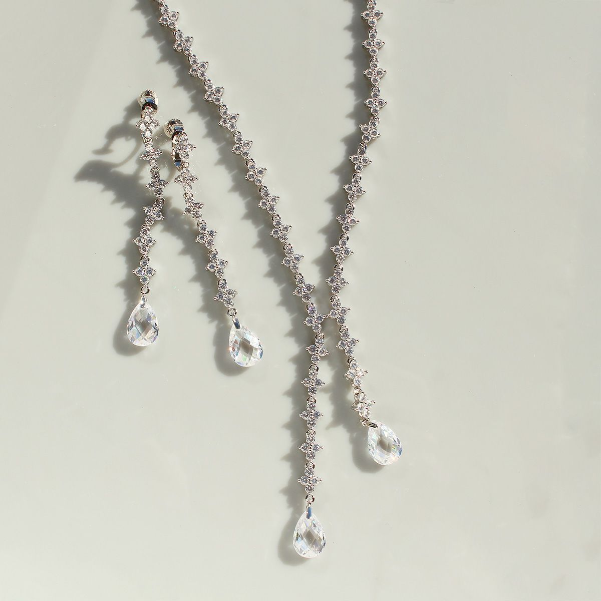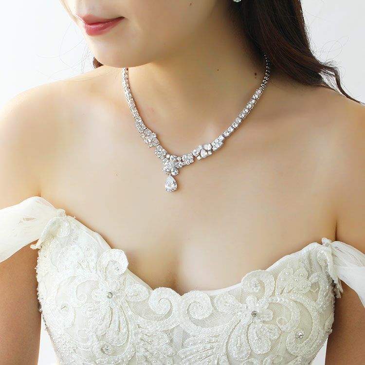 ドロップビジューキュービックジルコニアネックレス・イヤリングセット