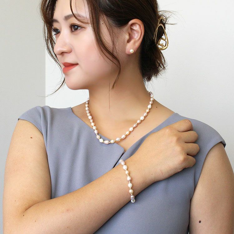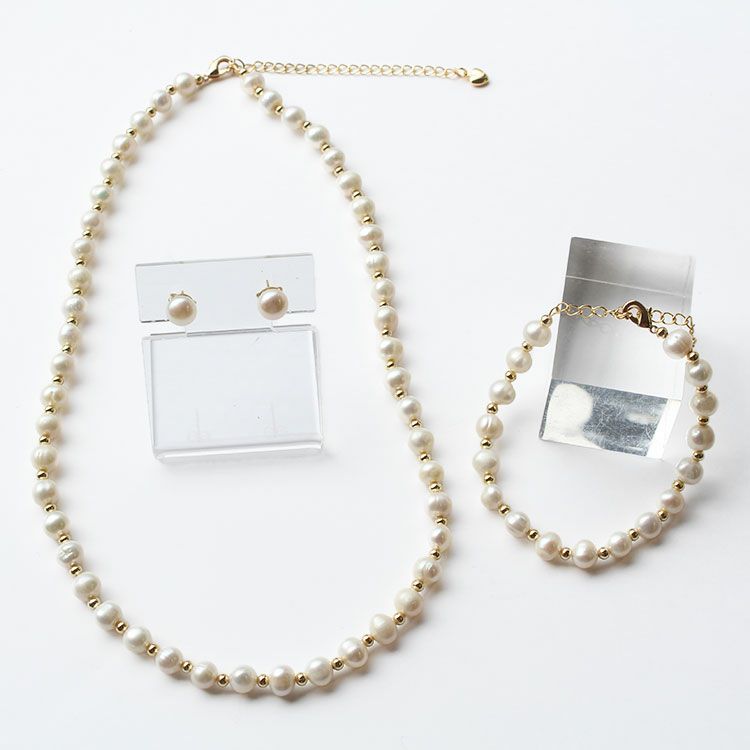 淡水パールネックレス・ブレスレット・ピアス3点セット/1240296--3