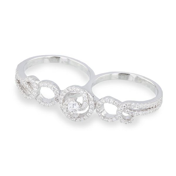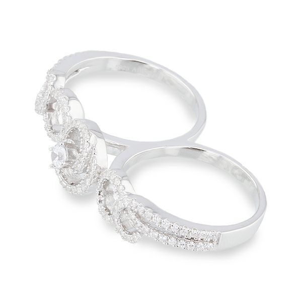 エレガントな手元を演出するツインリング。キュービックジルコニアが華やかさをプラスしてくれます。